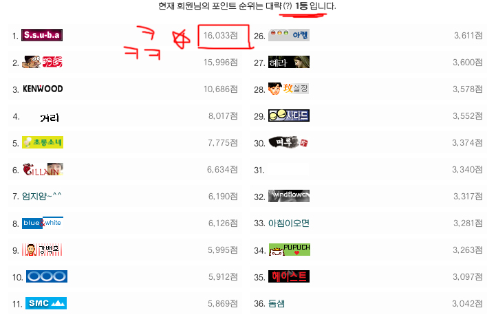 쑤바가 다시 포인트 1위 차지함..ㅋㅋㅋㅋ
