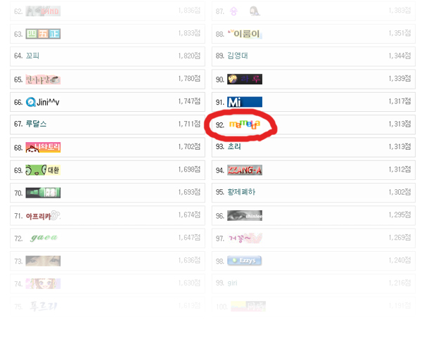 포인트랭킹 순위