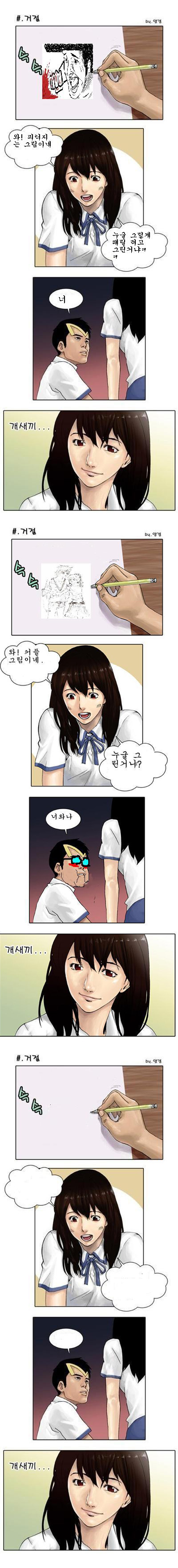 [여자] ...삽화는... ......카툰방에 올려야지..... [남자] .....내맘이다.....
