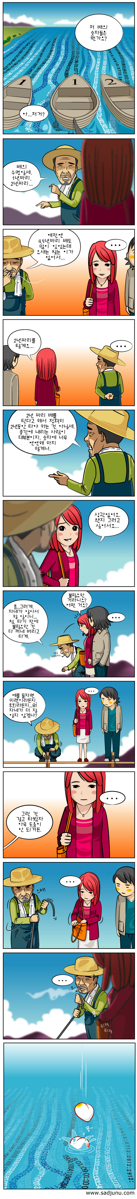 캔우드님... 음.....음.... 반문할 여지가 없네여.. ^^ 어쩌면 사랑이라는 두글자가 중요한게 아니라.. 캔우드님의 말씀처럼 지키려는 마음이 더 중요한지도 모르겠어여. ^^ 그런데.. 저도 예전에.. 카툰처럼.. 뽕당~ ^^