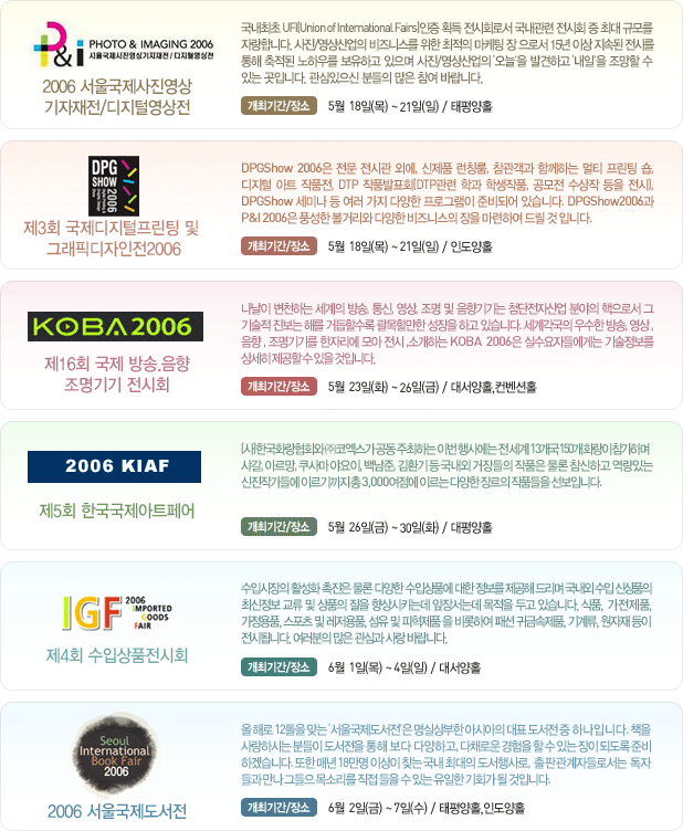 그래픽디자인전은 가볼만할꺼같구.. 도서전은 작년에 다녀왔는데.. 출판디자인쪽으로 구경하러갔었는데.. 음.. 그다지 도움이 되지는않았던거같은.. ㅎㅎ(책판매목적..) 그래도 간김에 공짜로 둘러보긴좋은듯.. ^-^ (공짜로주는게 많아서.ㅎ.ㅎ)
