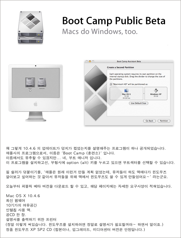 애플, 부트캠프 공개.."매킨토시서 윈도XP 사용"