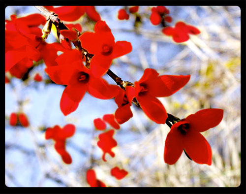 빨간 개나리꽃