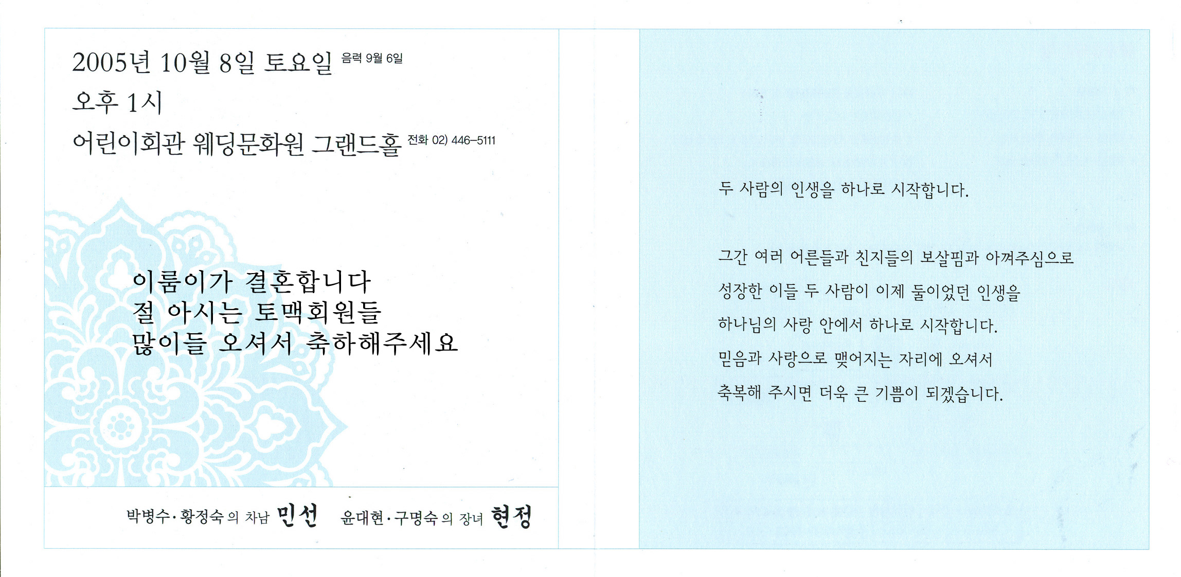 축하! 축하합니다. 난 3주 연속 부산의 예식장 다녀야 한다우. 어제 장전동, 8일 온천장, 16일 해운대 예정