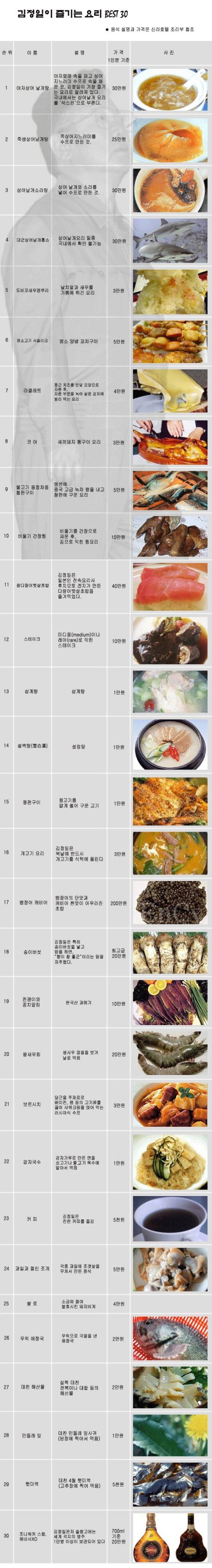 김정일이 즐기는 요리 베스트 30