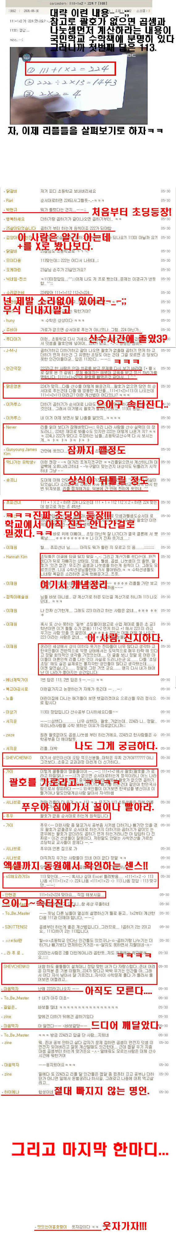 음.....근데 수만은 리플들 중에 1번답은 113, 2번답은 9 라고 한사람이 있는데,,,,,,, 2번답이 왜 9일까요...ㅡㅡ?