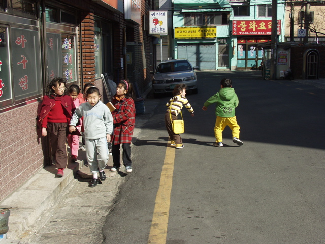 노랑바지는 고래잡았나 보다~ 빨간 체크...분홍옷 삥뜯고 있는데? 흰옷이 망보네..."아저씨 뭐유?"