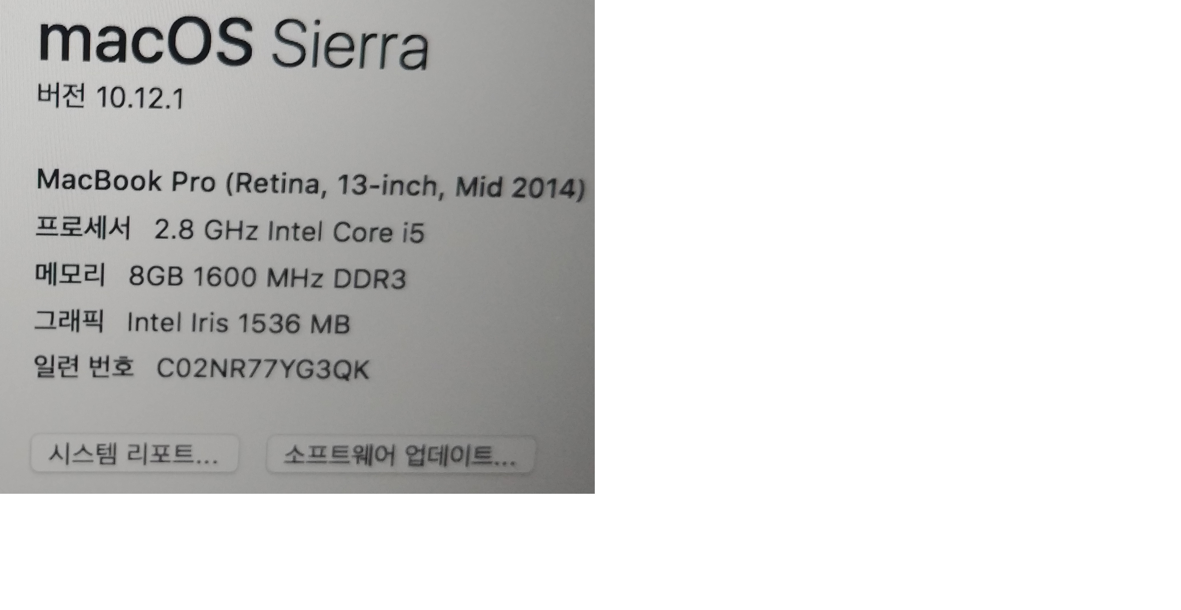 맥북 프로 2014 레티나 13인치 i5 ram8 ssd256 팜