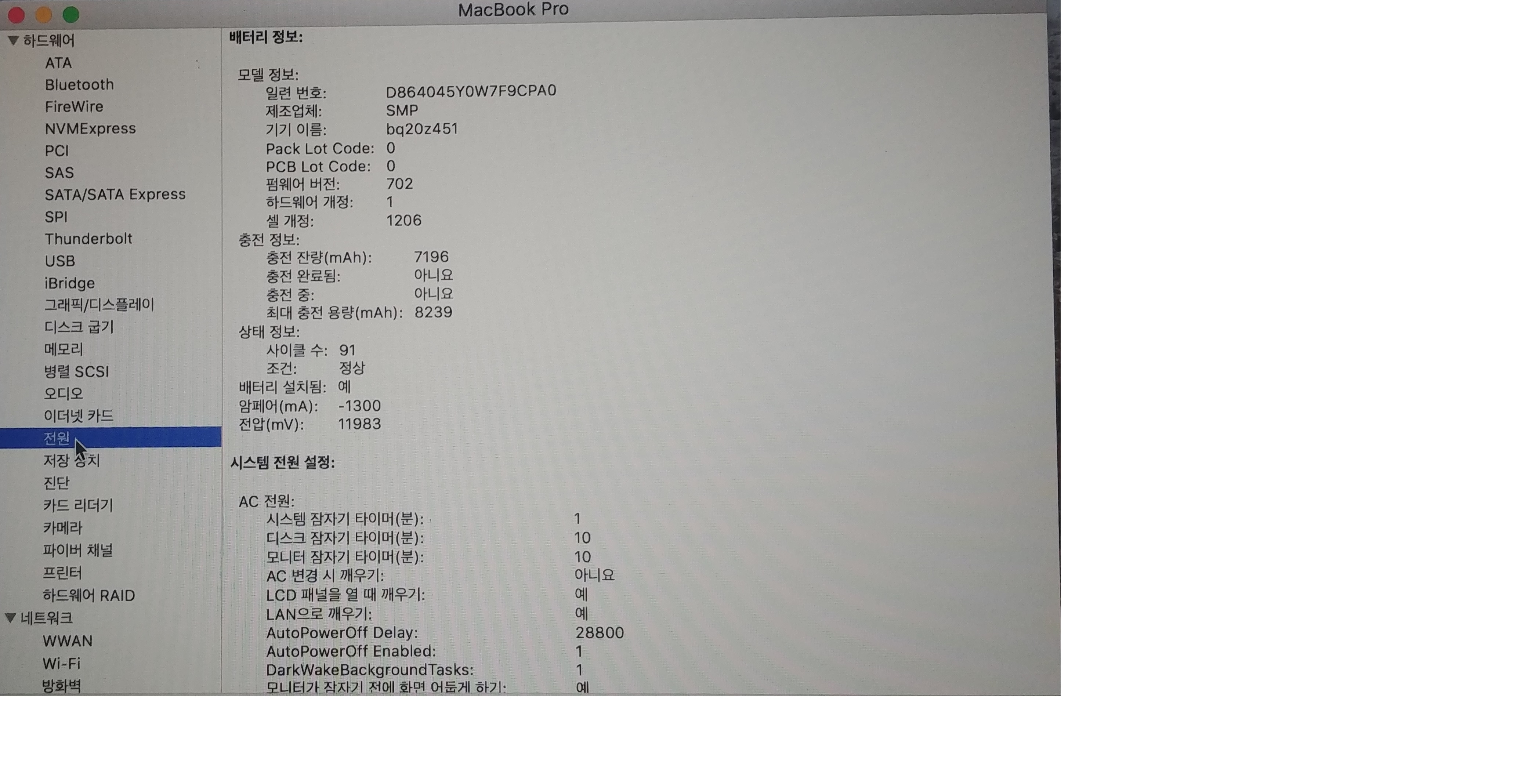 배터리사이클 91 최대충전용량 8239