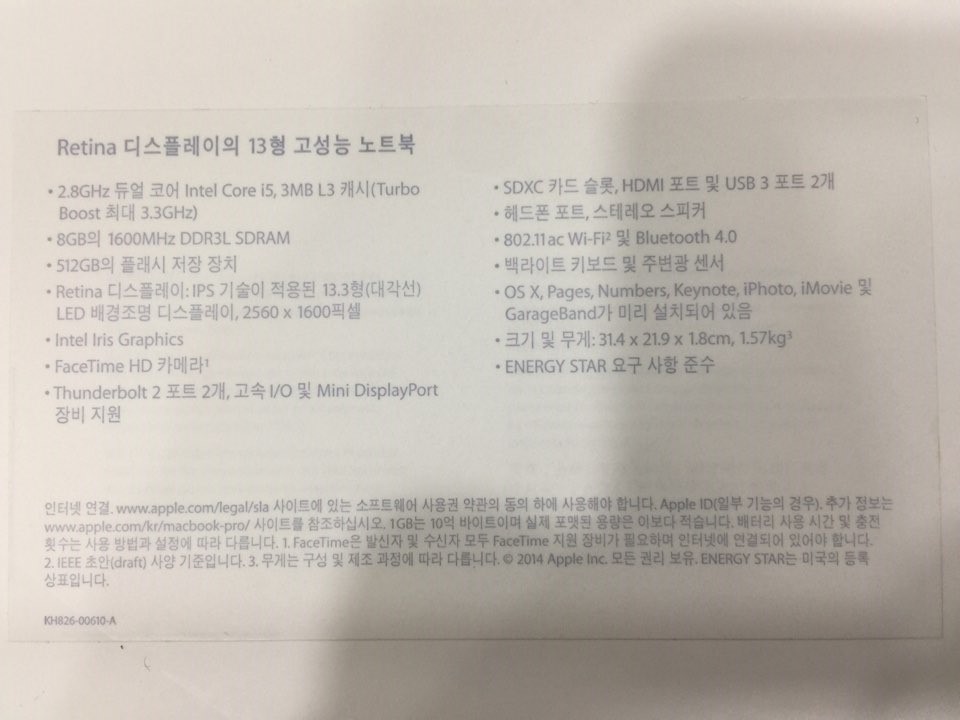 구매는 2015년 1월에 아미트 애플스토어에서 행사제품으로 구매했습니다. 제조년도는 2014 12월 입니다.