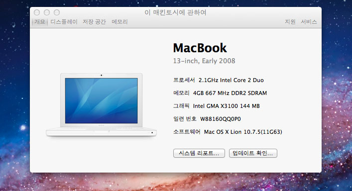 2008년 화이트맥북- 윈도우7까지 설치됨