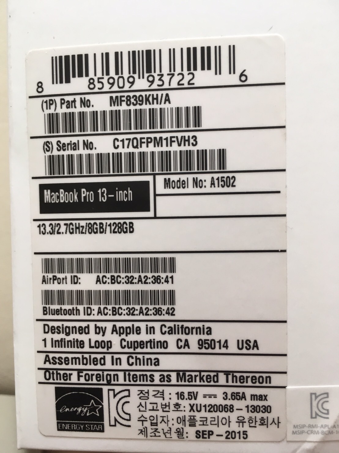 맥북프로 13인치 레티나 팜니다.