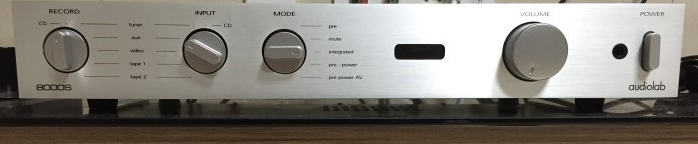 Controls: Mode selector switches the Audiolab 8000S from a standard integrated amplifier in to a dedicated pre-amplifier (disabling all power amp functionality and power use), a pre & power amplifier (activating the pre-amp outputs whilst leaving the power amplifier stage active) or in to "pre-power AV" mode (decoupling the pre and power amplifier stages, allowing the easy addition of an add-on decoder or receiver for superior home cinema integration).