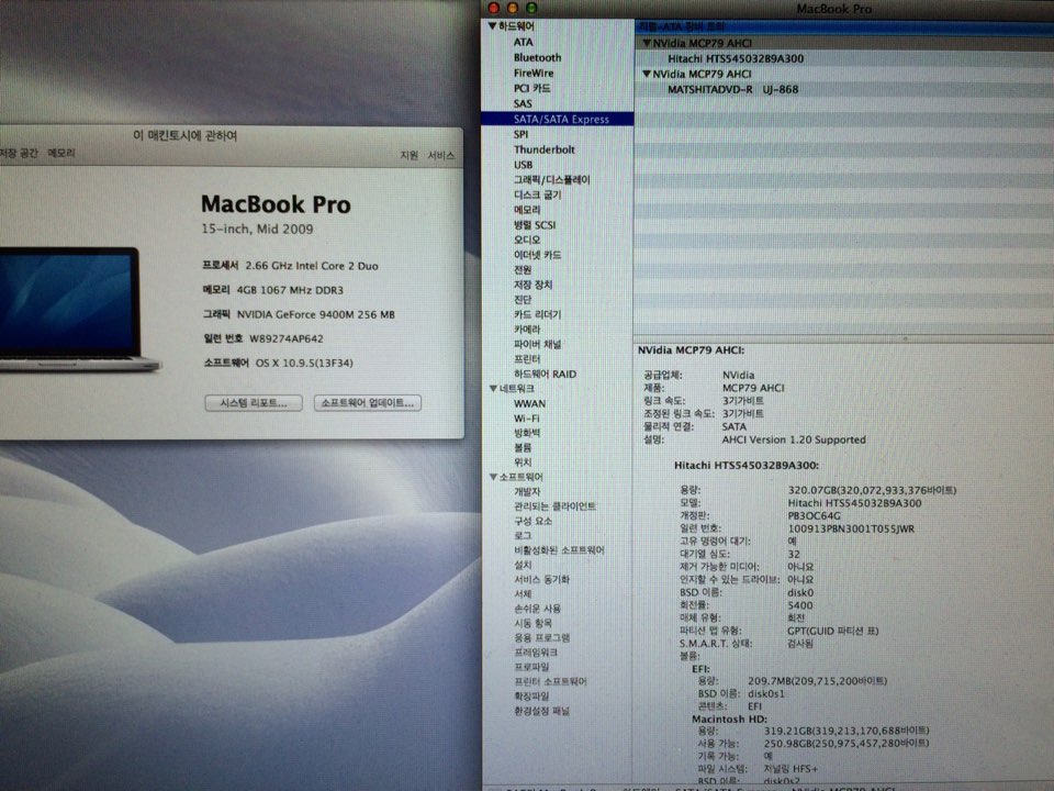 맥북프로 15인치 mid 2009년형 320기가,