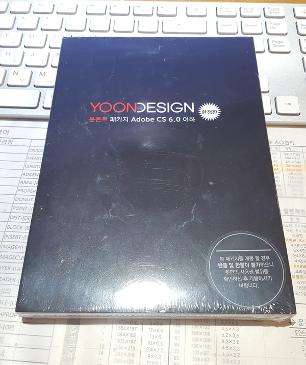 폰트도 보관만 하고 있어서 비닐커버도 그대로 있습니다. 윤폰트는 1대의 컴퓨터에만 설치가능한 1system용입니다.