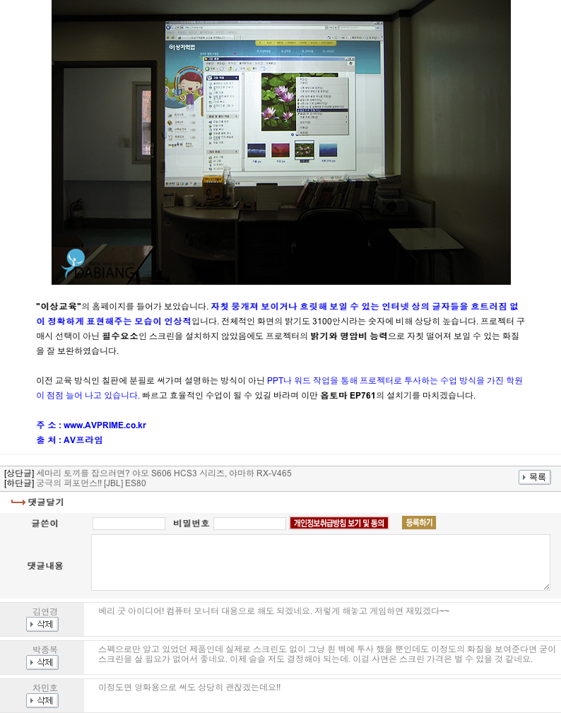 특A급 옵토마DLP 프로젝터-화면상태 새거나 같음