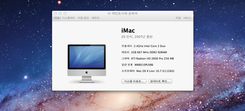 아이맥 20인치-2.4기가 인텔 코어2듀오 사양입니다