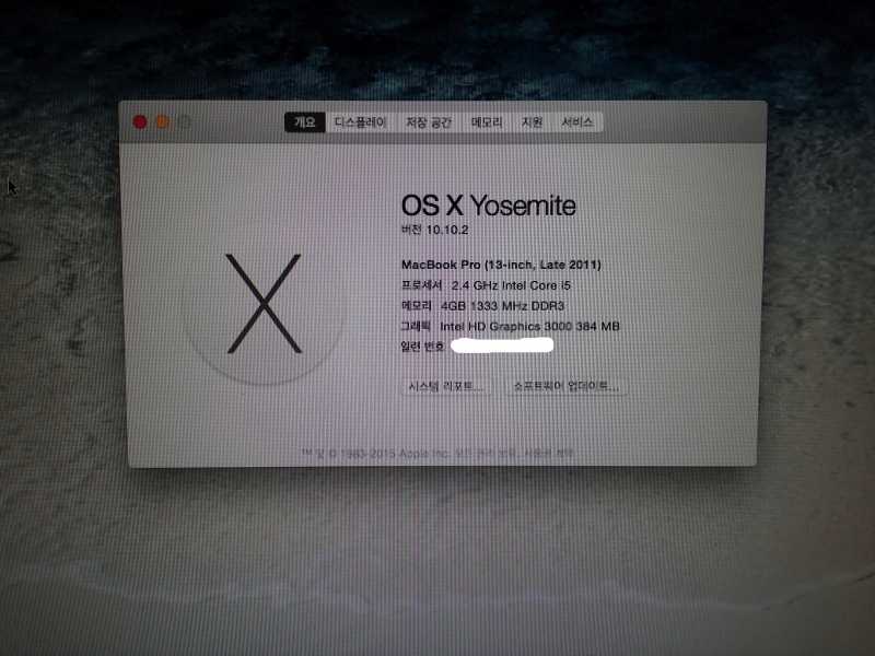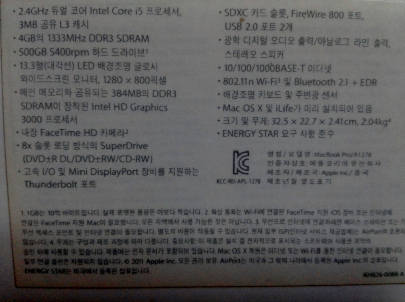 맥북 프로 13인치 (late 2011) 2011년 말에 구입하였습니다.