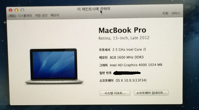 맥북프로 레티나 13인치 2012 late(메모리8GB, SSD 128G)에 팝니다