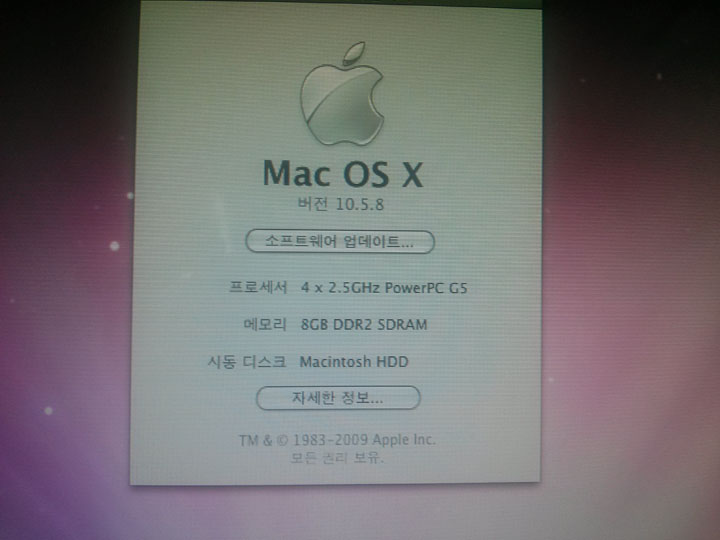 파워맥 마지막 세대로 사양도 최고급입니다. 2.5GHz 쿼드코어, 8GB RAM, 쿼드로 FX4500