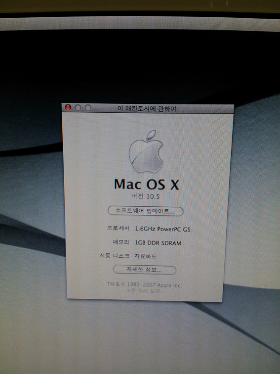 하드웨어적인 결함도 전혀 없고 현재 레오파드 10.5와 10.3.9가 설치되어 클래식 버전도 사용이 가능합니다.