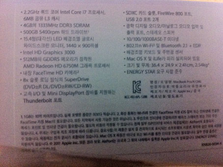 11년 맥북 프로 15인치형 (MD318KH/A)(미사용)
