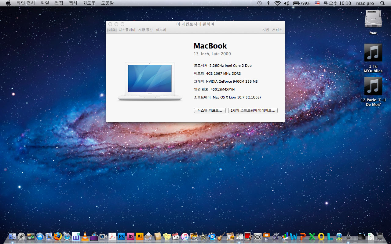 2009년 화이트 맥북 13인치- 맥 디자인프로그램들이 사진처럼
