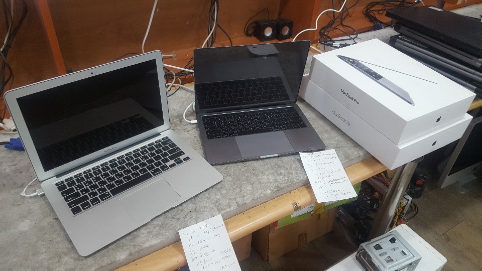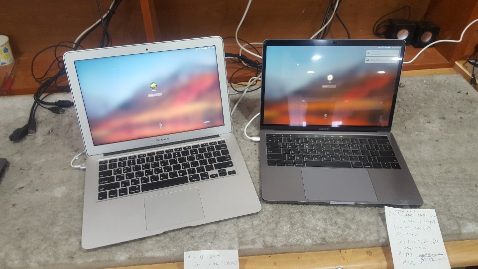 맥북에어 A1466(MQD32KH) 맥북프로 A1989(MR9R2KH) 각각 1대씩 판매합니다.