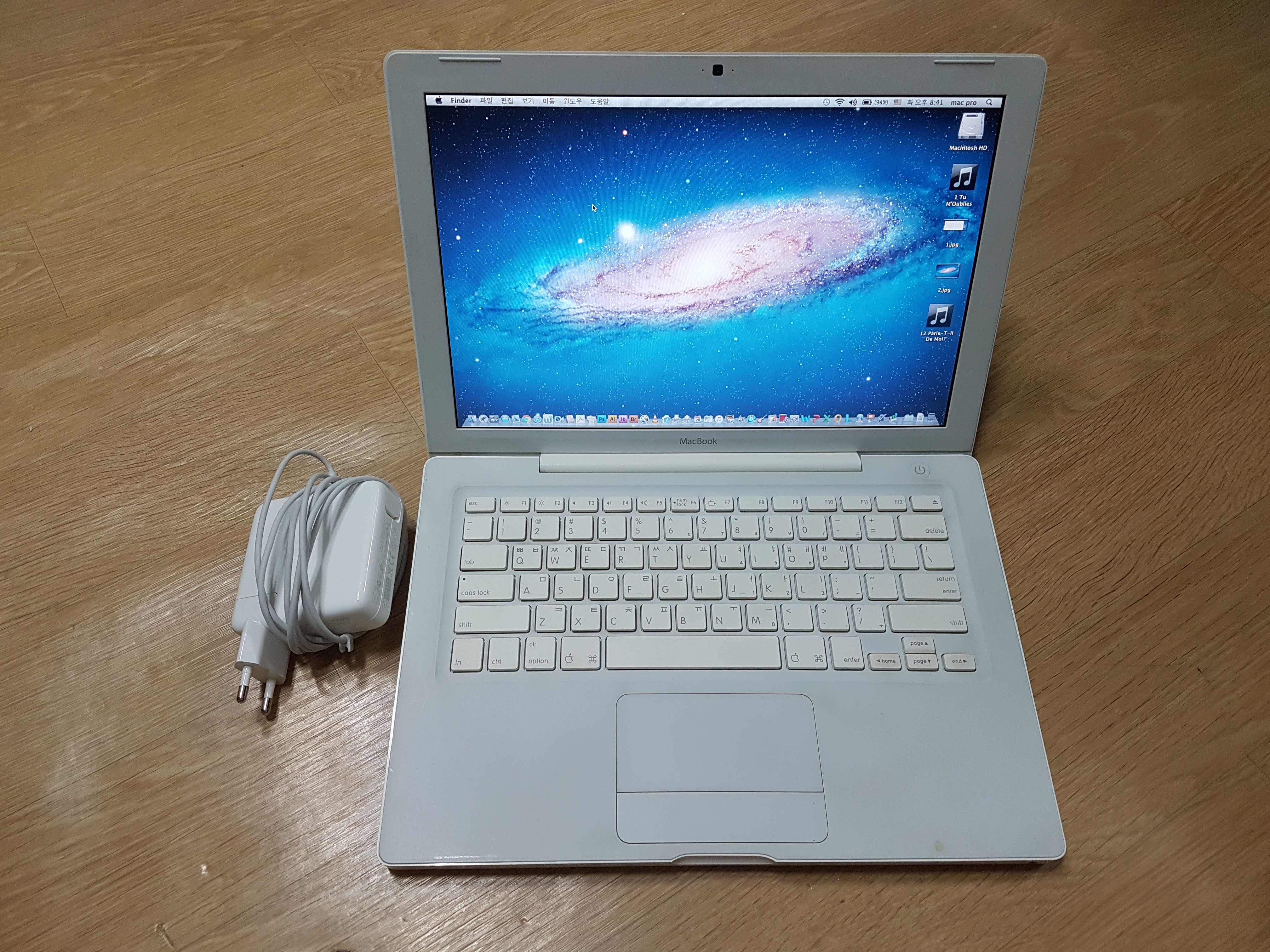구성품은 외관좋고 배터리상태최상인 화이트맥북과 새로 산 충전기입니다