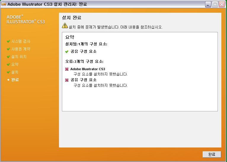 그래서 다시 일러cs3를 받아서 설치를 하는 중인데..계속 실패를 하네요. (첨부한 파일처럼 되네요)