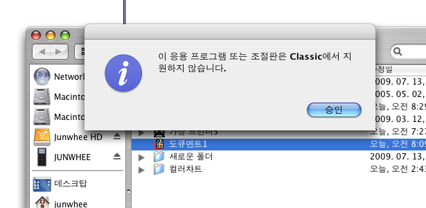 "이 응용프로그램 또는 조절판은 Classic에서 지원하지 않습니다' 라는 메시지가 뜨고