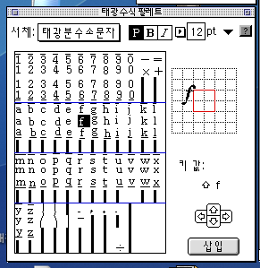 이미지에서와 같이 알파벳 " f " 가 태광수식 팔레트의