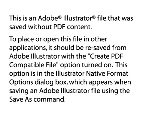 pdf content없이 저장되어서 다른 프로그램에서 플레이스 시키거나 열어보고싶을때는 다시 저장해 달라는 말 Save as명령으로 .ai 포매맷으로 저장할때 Create PDF compatible file을 체크하시면 됩니다(일러 버전 10)