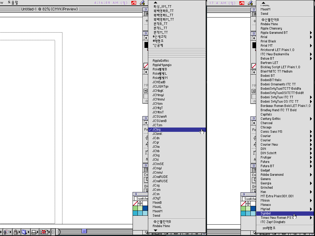 희한하게 시스템(조절판-서체) 이외에 프로그램(일러스트,포토샵,쿽3.3)들이 한글인식만 되고 영문인식이 안됐어요. 그것도 영문은 몇개는 되고 거의가