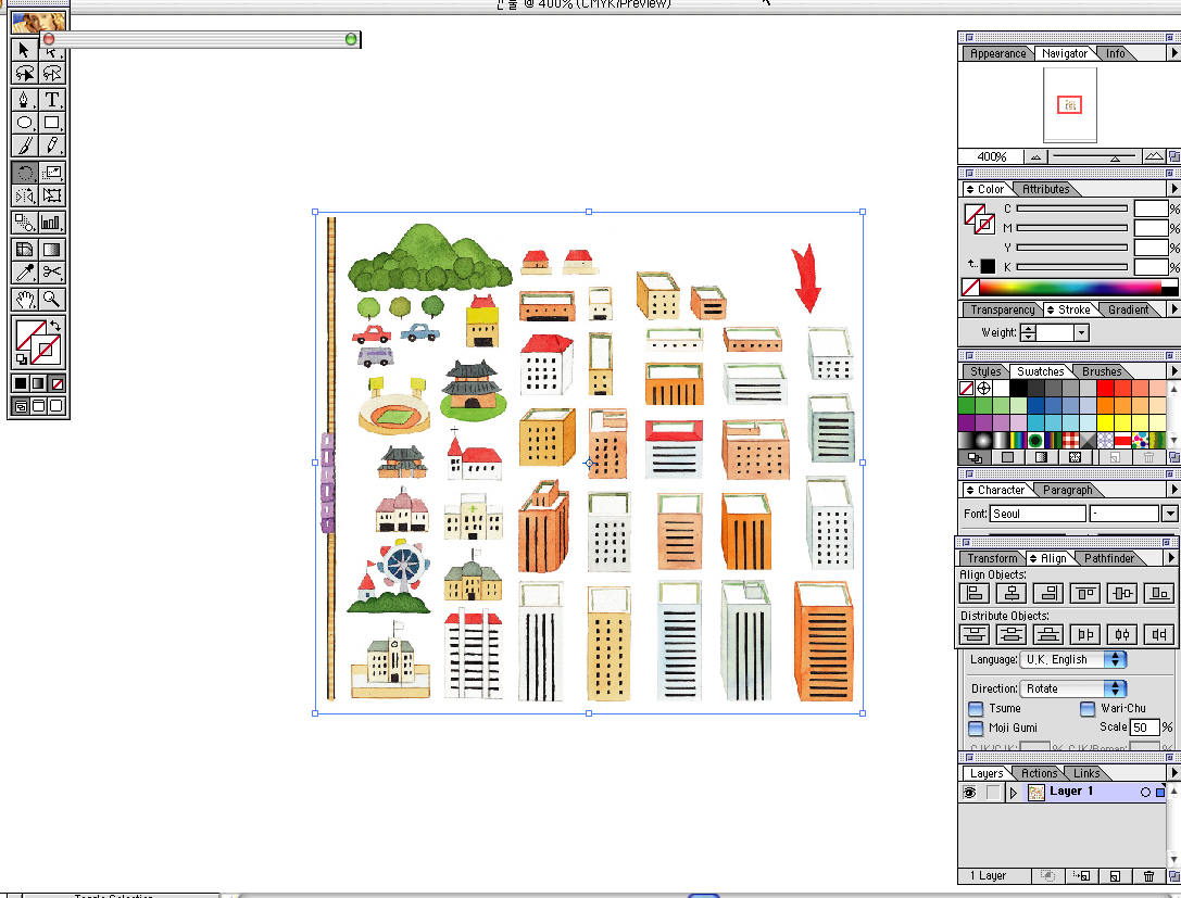 일러이미지 안에 여러가지 이미지가 있어요. 그런데 이 이미지중 하나만 필요한데 선택을 하면 모든 이미지가 다 선택이 되거던여? 각각 따로이 선택되는것이 아니라 커다랗게 그냥 그 이미지자체가 한이미지화 되어 버린거죠.