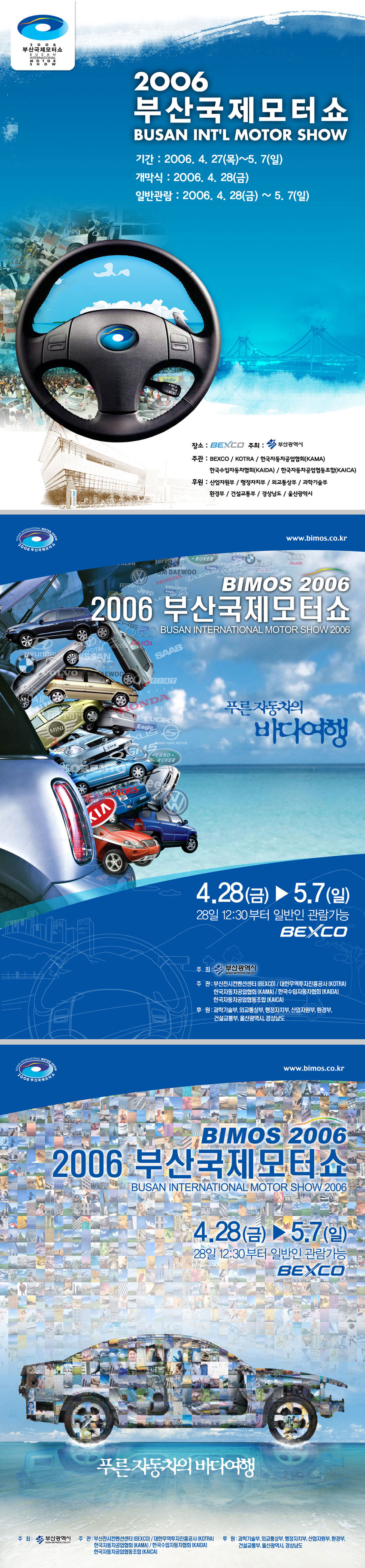 첫번째시안....국제모터쇼포스터인데 글로벌한 느낌이 전혀 없네요 두번째시안....폐차장같은 느낌이... 세번째시안....주제가 비쥬얼에 묻혔습니다 이거 바쁘게 대충하셨죠? 평소 봐오던 엠아이식스선배님의 작품이 아니네요 ㅠ 걍 제 느낌입니다^^ (__)