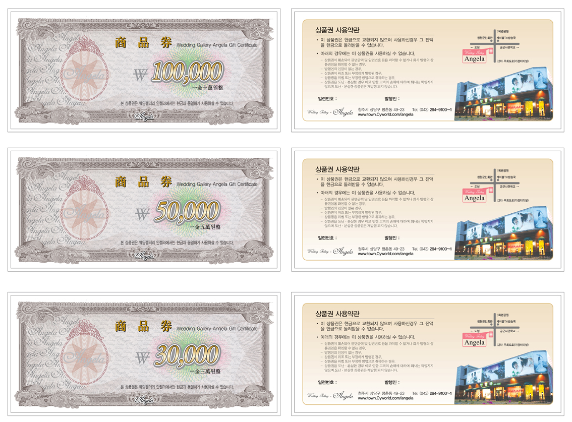 안젤라 웨딩샵 상품권...