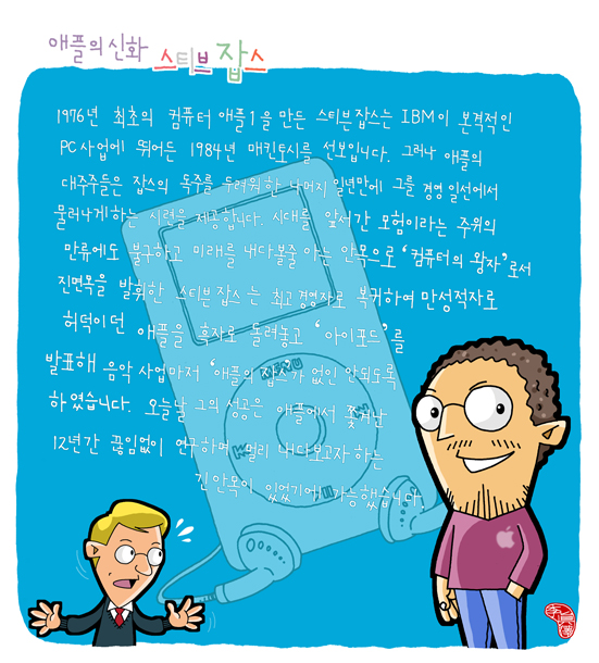 일단 애플이라는 컴퓨터를 만든 사람은 스티브 잡스라기 보다는 스티브 워즈니악이라고 봐야 할겁니다...애플사를 잡스와 워즈니악이 함께 만들었지만 컴퓨터를 개발한 사람은 워즈니악이죠...