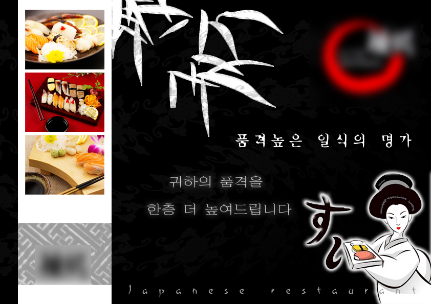 오히려 일본여자를 좀크게하고 심볼을 줄이고 컬리그라피를 좀 키워서 좌측상단에 배열하심이 어떤신지~~