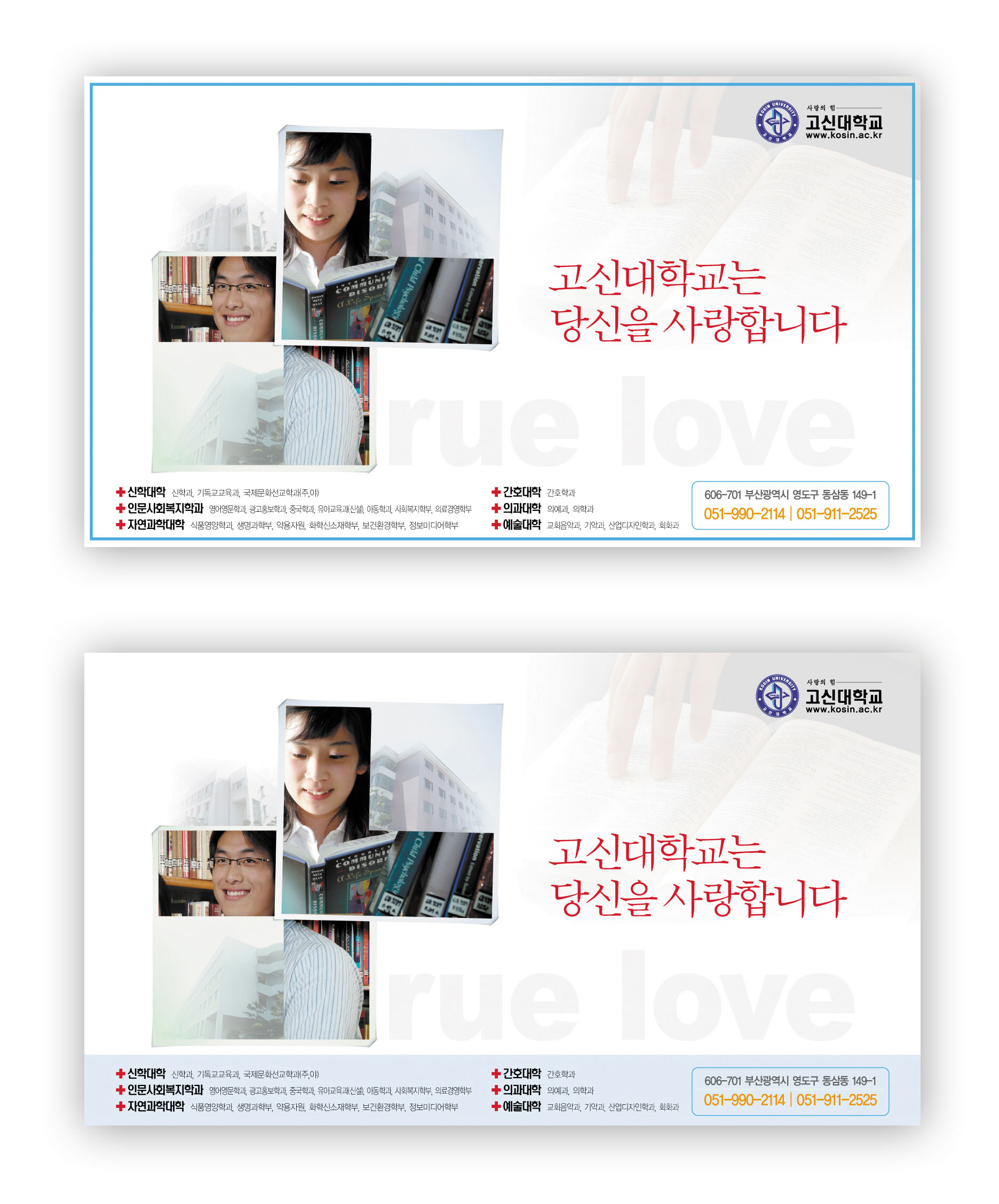 T에 클로즈업된 이미지가 많이 심심,얌전합니다. 참신한 대학교라서 그런가욤? 글구, 올리실때, 그림자가 좀 옅으믄 훨 디자인이 돋보일거 같슴다.
